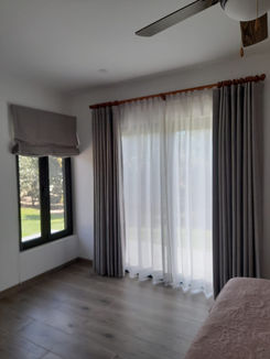 Es un modelo decorativo y ordenado, ordenado  porque la distancia entre uno y otro ojal es el mismo, esto se logra realizando la distribución de espacios con hilo invisible,  los tejidos empleados pueden ser livianos hasta pesados, el  color y material del  del tubo y ojales es a elección de acuerdo al efecto que desees lograr y al estilo de decoración , nuestro personal se encarga de asesorarte.